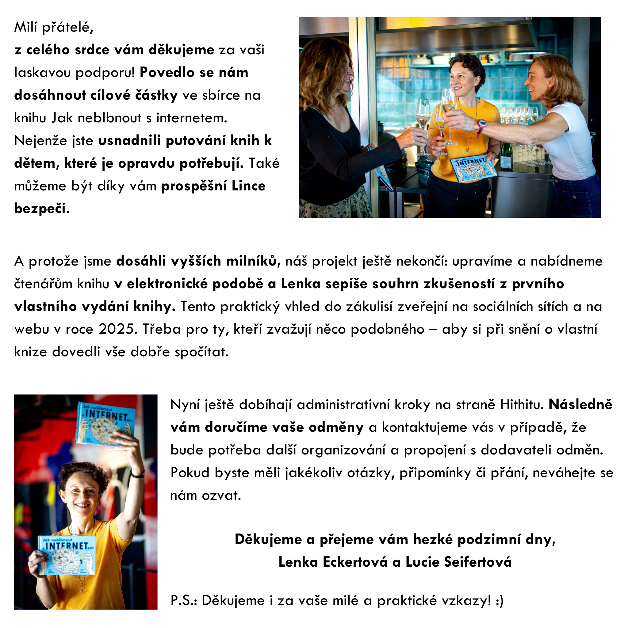 Podpořte vznik knihy, která radí dětem i jejich dospělým, jak se v online světě pohybovat bezpečněji, zůstat zdraví a poradit si s problémy. Dětem s legrací v komiksu, dospělým podrobnějším textem a s odbornou garancí Linky bezpečí.