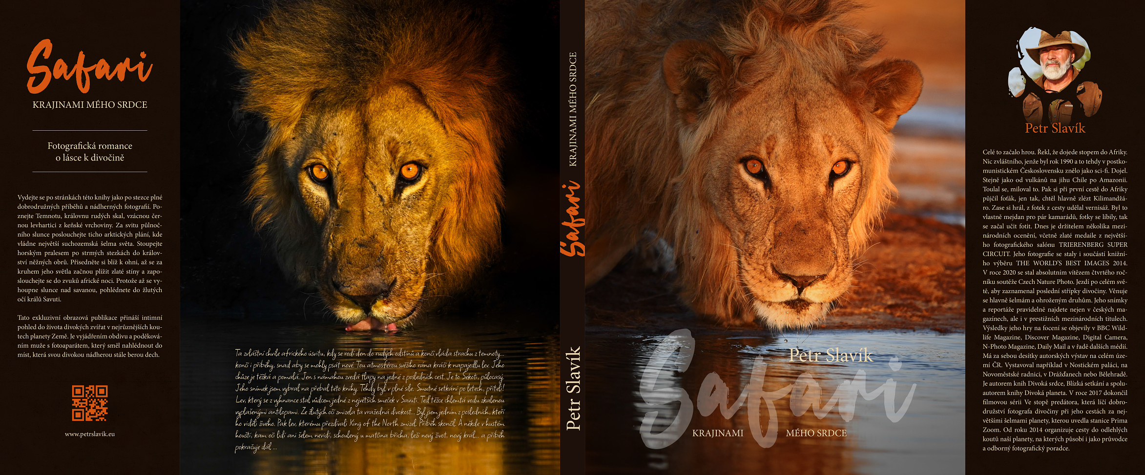 SAFARI krajinami mého srdce (podtitul) je fotografická romance o lásce k divočině Vydejte se po stránkách této knihy jako po stezce plné dobrodružných příběhů a nádherných fotografií. Poznejte Temnotu, královnu rudých skal, vzácnou černou levhartici z keňské vrchoviny. Za svitu půlnočního slunce poslouchejte ticho arktických plání, kde vládne největší suchozemská šelma světa. Stoupejte horským pralesem po strmých stezkách do království něžných obrů. Přisedněte si blíž k ohni, až se za kruhem jeho světla začnou plížit zlaté stíny a zaposlouchejte se do zvuků africké noci. Protože až se vyhoupne slunce nad savanou, pohlédnete do žlutých očí králů Savuti. Tato exkluzivní obrazová publikace přináší intimní pohled do života divokých zvířat v nejrůznějších koutech planety Země. Je vyjádřením obdivu a poděkováním muže s fotoaparátem, který směl nahlédnout do míst, která svou divokou nádherou stále berou dech.