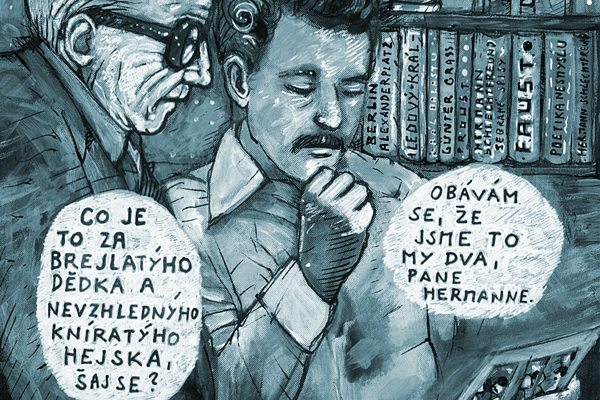 Jeden stůl, dvě židle, stísněná pracovna v mnichovské garsonce, dva zavařené mozky a složitý svět všude kolem. Nejslavnější německý spisovatel Hermann Schlechtfreund, literární gigant, a jeho věrný obdivovatel, novinář a začínající básník Jožka Lipnik si vyměňují ostré názory na současnou politiku, společnost, kulturu a, slovy pana Hermanna, „i tu vopravdovou lidskou člověčinu“. Na české kulturní scéně vysedávají a hovoří už skoro deset let. Dva věční dadaisté, surrealisté, teroristé slova a srandisté se na Vás nyní poprvé těší v samostatné knižní podobě plné zábavy, poučení, provokace a legrace.