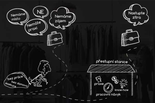 Snad každý z nás už prožil chvíle, kdy by si přál přestoupit na jinou linku – změnit práci, bydliště… Chceme být přestupní stanicí pro ty, které jejich linka dovezla na ulici a zanechala bez práce; pro ty, před kterými se zavírají dveře “jen” kvůli životní zastávce, kde nyní čekají na další spoj.