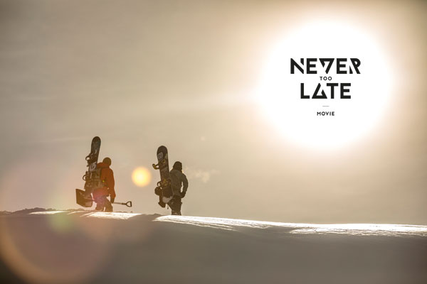 NEVER TOO LATE MOVIE je snowboardový film zachycující sezónu party přednich českých a slovenských jezdců na originálních lokacích v České republice i v zahraničí od tvůrců Filipa Jäschkeho (Inmove Films - kamera / střih) a Martina Večerky (Freeride.cz - produkce). Nebudeme si na nic hrát, takových filmů vychází každý rok po celém světě spousta. Právě u nás doma ale už nic podobného delší dobu nevzniklo a náš snowboarding si to podle nás zaslouží. A zasloužíte si to především vy, kdo milujete snowboarding jako my! Formát filmu bude koncipovaný tak, jak to bylo běžné v minulosti a drží se toho už jen málo filmových produkcí. Jezdci v něm budou mít svoje jednotlivé "párty", tedy pasáže, ve kterých uvidíte to nejlepší, co s námi během sezóny natočili. Žádný dokument, žádné webisody, žádné rádoby epické řeči, prostě jen čistý snowboarding a skvělý soundtrack.