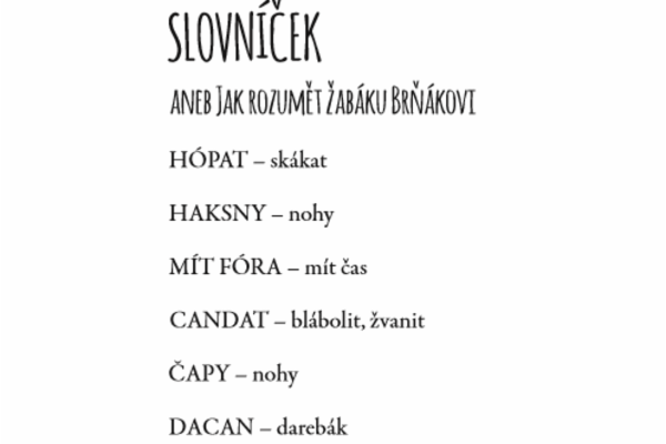 Naleznete tam také slovník s mluvou žabáka Brňáka a něco zajímavého o přírodních památkách, které děti mohou navštívit.