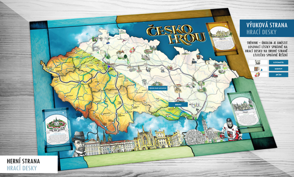 Martina: Ano, existuje hodně vědomostních her, které testují naše znalosti. Přiznávám, že tyhle hry nehraju ráda, při hře si často připadám jako blbec. Správnou odpověď mnohdy jen tipuju a tím, jak jsou otázky vytržené z kontextu, tak je okamžitě zapomenu. Chtěla jsem proto vydat hru, která bude jiná. Bude učit lidi bez rozdílu věku a přeroste v taktický souboj motivující k pátrání a nacházení správné odpovědi. Hru při které si ČR skutečně procestujeme, alespoň prstem na mapě.