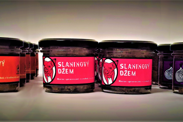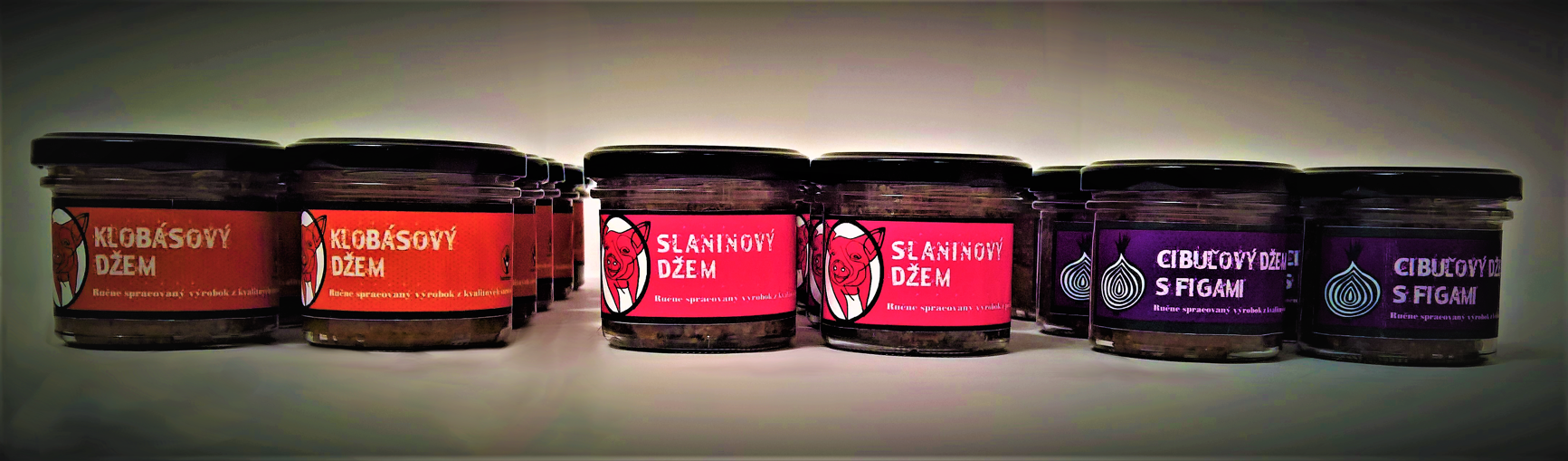 Dobroty, ktoré prinášame, spája s klasickými ovocnými džemami hádam len podobná konzistencia a spôsob prípravy varením, ďalšie podobnosti by ste hľadali márne. Netvrdíme, že sme vynašli koleso, teda že pred nami nikdy nikto nespravil slaninový, klobásový či cibuľový džem, ale tvrdíme, že sme prví s receptúrou, v ktorej nenájdete rafinovaný cukor, lepok, laktózu ani žiadne konzervačné látky. Džemy vyrábame z kvalitnej slaninky alebo klobásy, červenej cibule a ostatných surovín v bio kvalite.