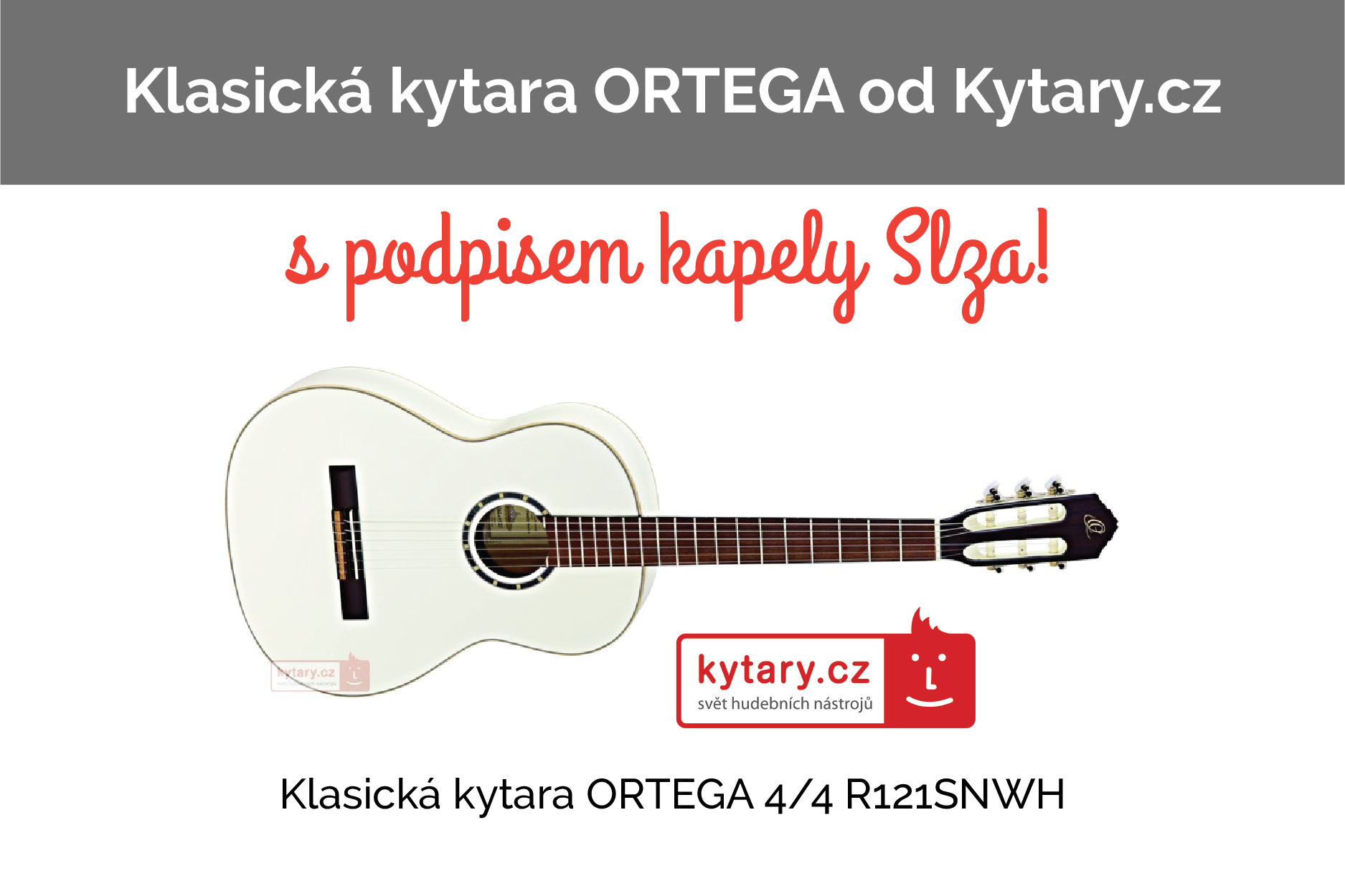 Klasická kytara Ortega stále čeká na svého majitele, můžete ji pořídit buď sobě pro radost nebo Vašim potomkům, kteří se na kytaru učí, je vhodná jak pro začátečníky, tak pro zkušené hráče. Kromě toho může být kytara i skvělým dárkem pro fanoušky kapely Slza, která náš projekt podporuje. Kytaru Vám můžou podepsat Lukáš Bundil a Petr Lexa.