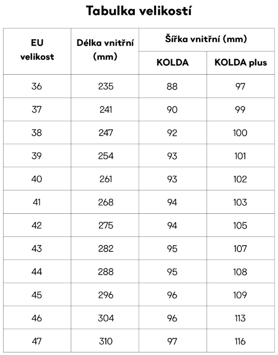 Stejně jako u základních modelů KOLDA a KOLDA+ můžete i u zimních bot vybírat ze dvou variant – užší ZAVID nebo širší ZAVID+ ve velikostech EU 36 až 47 a na výběr jsou 3 basic barevné varianty – černá s černou podrážkou, šedá s černou podrážkou a hnědá s přírodní podrážkou.