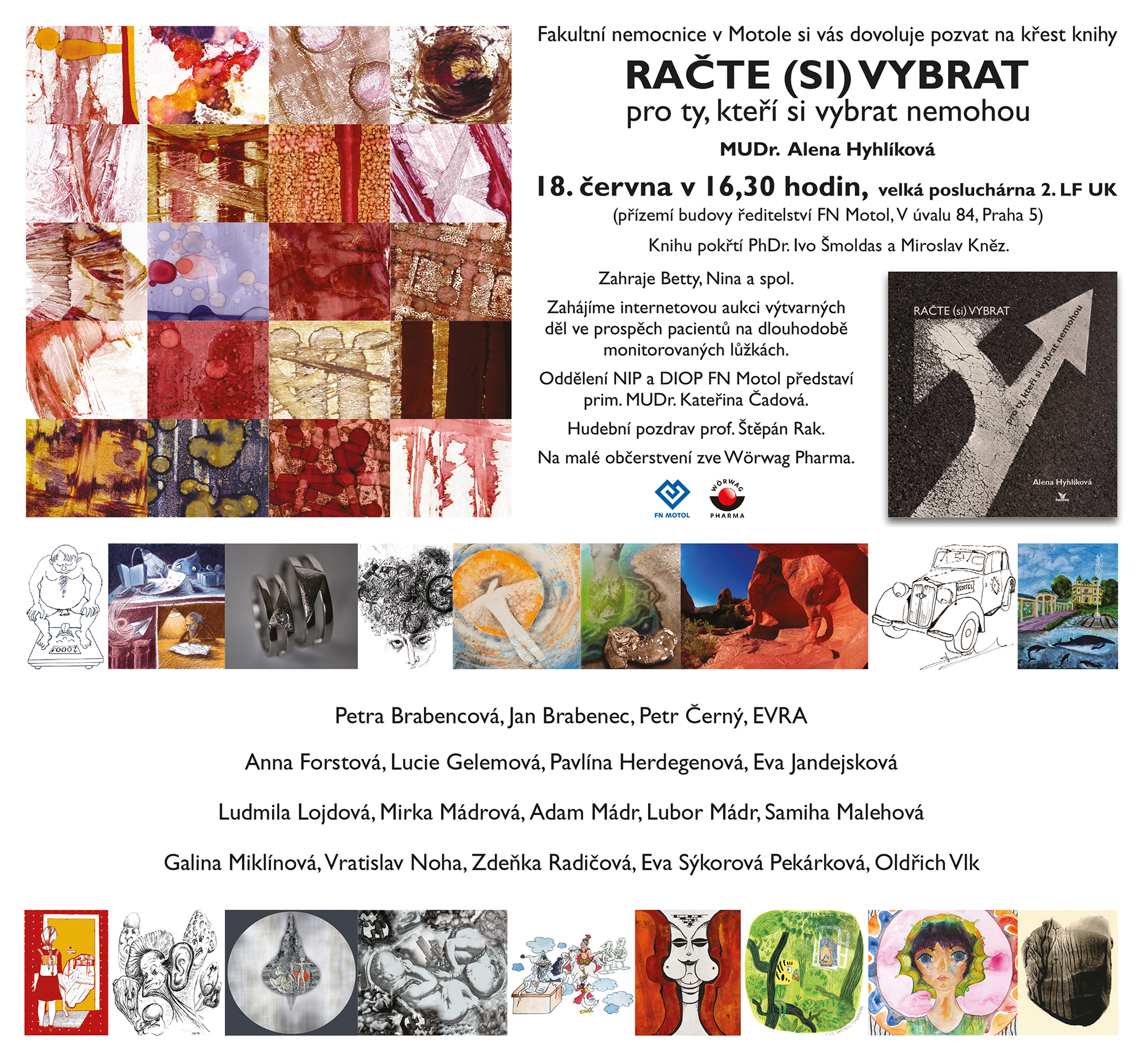 Račte si, prosím, vybrat a podpořte vydání knížky příběhů a básniček. Nabízíme hru se slovy, laskavost a humor, ale i netradiční obrazový doprovod, vytvořený různými technikami šestnácti výtvarníků. Jakoukoli podporu zvolíte, vyberete dobře.