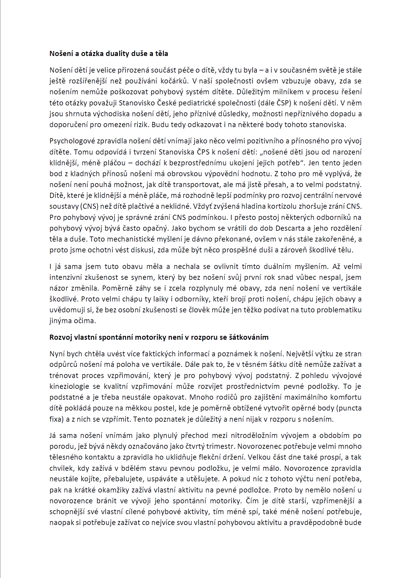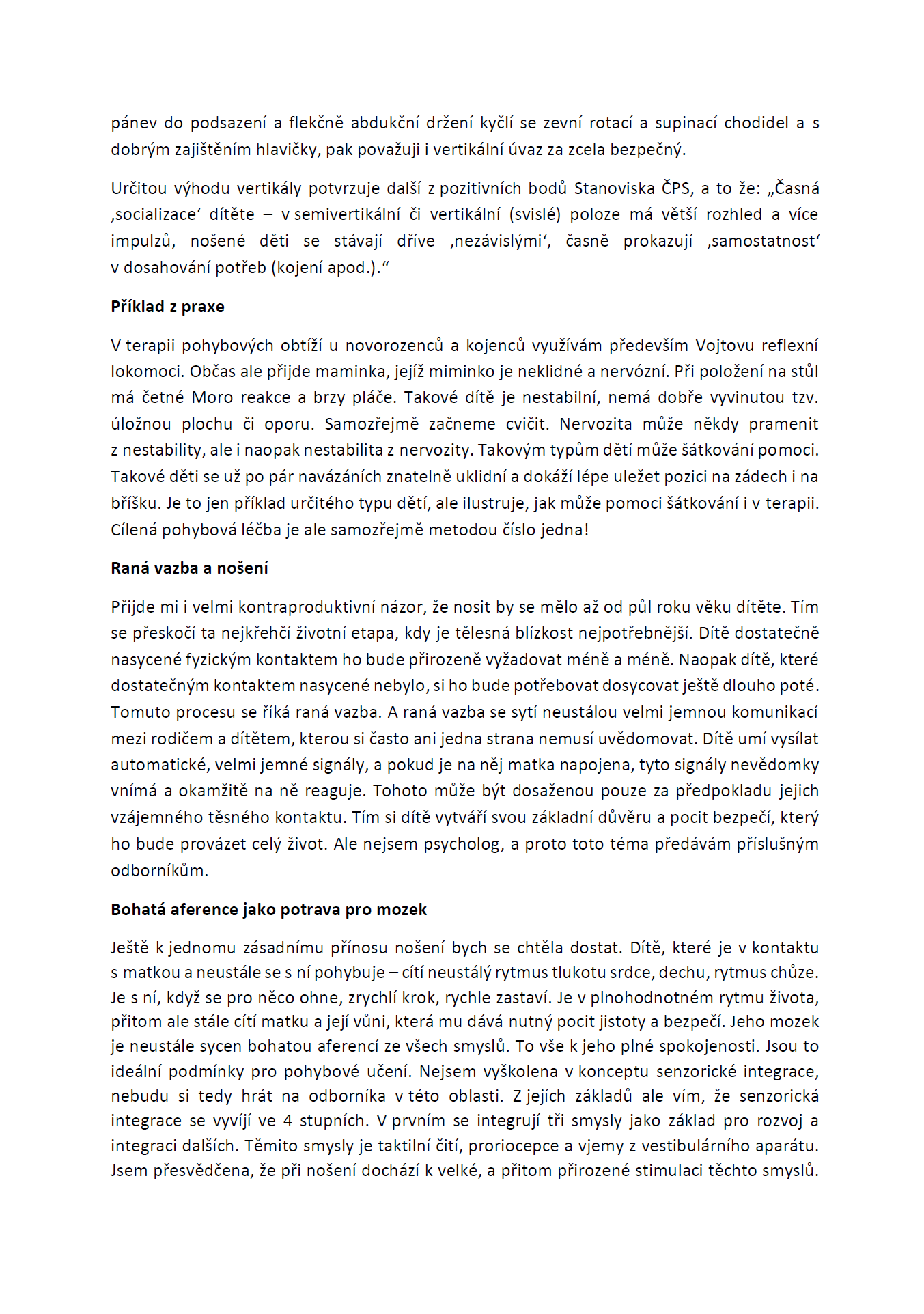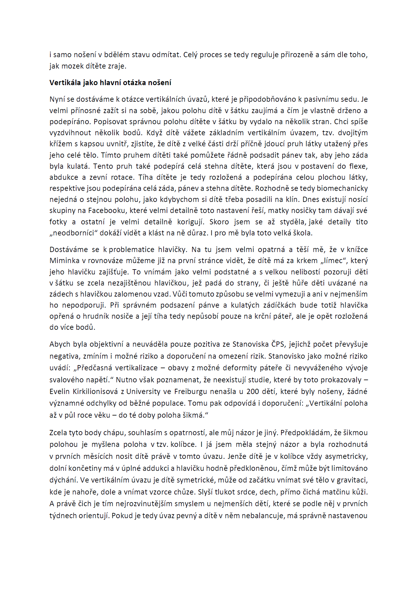 V jejím podrobném vyjádření najdete i osobní zkušenost s nošením vlastních dětí v šátku: