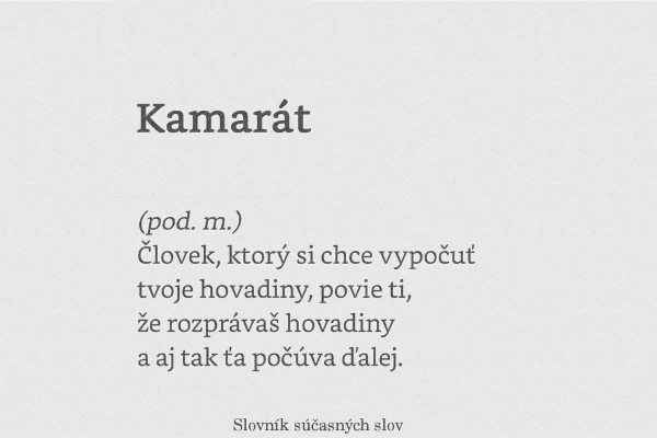 Slovník súčasných slov je tu na to, aby bežné slová mali svoje špecifické definície, ktoré sedia práve na dnešnú dobu. Chceme vydať knihu, a na to potrebujeme vás. Vašou podporou si ju predobjednáte a my vám ju pošleme medzi prvými!