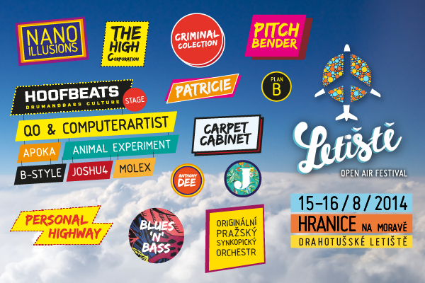 Takže ten slavný festival Letiště proběhne v pátek a sobotu 15.-16. srpna 2014 v Hranicích na letišti. Line-up je složen z hudebníku české a slovnské nezávislé scény a tím se výrazně liší od jiných festivalů. Jako příklad můžu uvést Nano Illusions se zpěvačkou Martou Kloučkovou, Criminal Colection z blízkého Val.Mezu, pražskou kapelu Pitch Bender včele s osobitou Sisou Fehérovou, one man show J, Pražská Jidiš Kapela, která nás roztančí v rytmu klezmeru či Originální Pražský Synkopický Orchestr, který slaví 40 let své existence. Kapely vystoupí na dvou stagích, z nichž jedna bude skvělá a klasická – vysoký pódium, na něm kapela, Vy posloucháte, ale ta druhá... Ta bude ještě lepší! Postavena bude v šapitó a vlastně to bude i trochu cirkus, protože koncerty kapel se zde budou míjet s Jam - session, do kterého se budete moci zapojit i Vy, návštěvníci festivalu Letiště. V rámci doprovodného programu festivalu proběhne promítání krátkometrážních studentských filmů Univerzity Palackého a Univerzity Tomáše Bati, hudební a tančení workshopy a snad i výstava děl mladých výtvarníků. Během festivalu je plánované sportovní vyžití – dopolední fotbalový turnaj, frisbee, BMX flatland a další.
