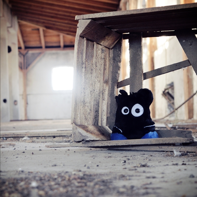 Protože máme také takovou "úchylku", šli jsme ještě dál… Wrr je na naprosto totožném místě, lokomotiva kopíruje tvar dveřního oblouku, místo lampy je měsíc - taky zdroj světla - chápete