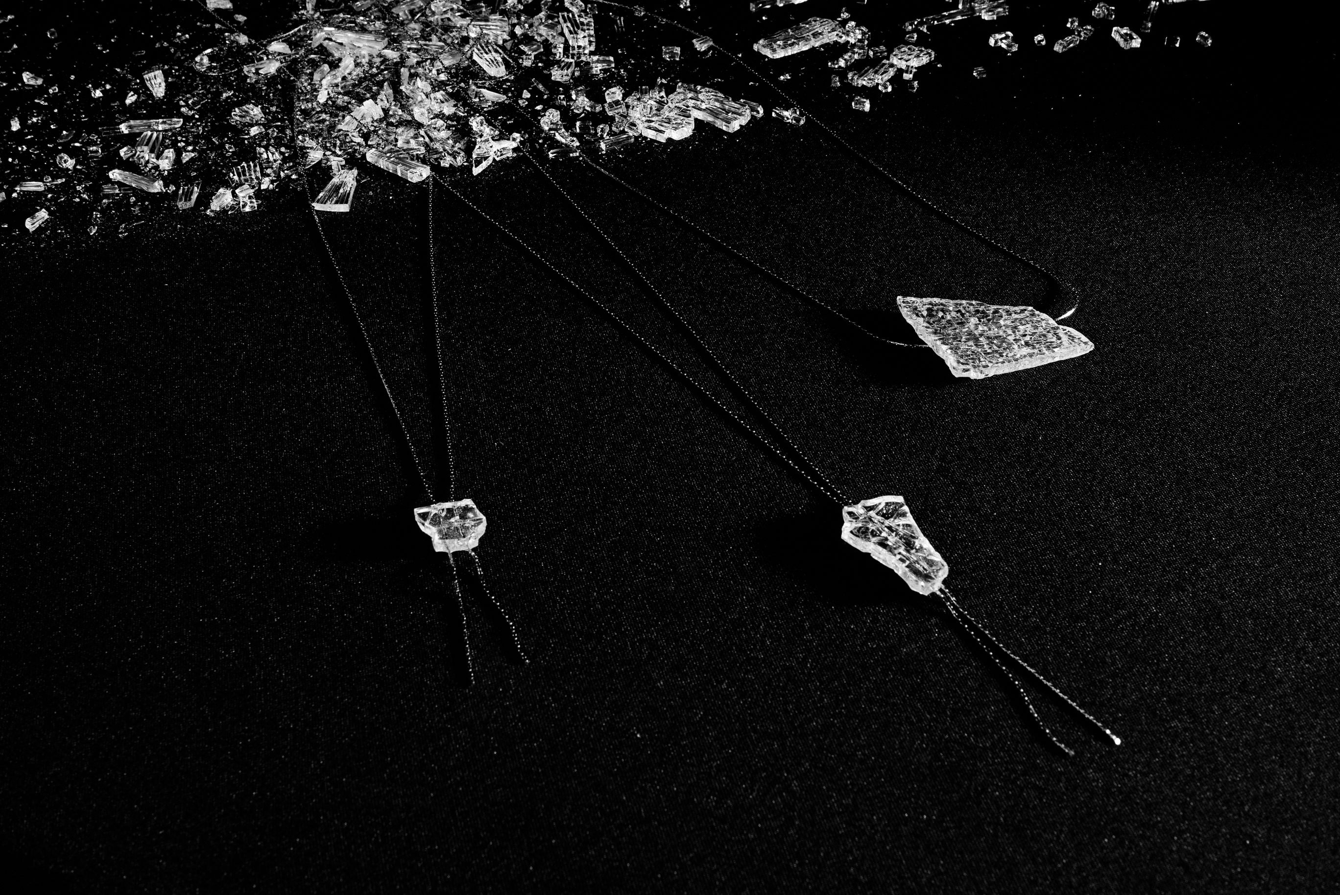 Z vymlácenýho okna naší dodávky vznikly tyhle jedinečný šperky z dílny ŽELÉ JEWELLERY. Limitka pro 60 vostrejch holek. Každej kus je originál tvarem i velikostí. Největší střepy, který z tranďáka zbyly.