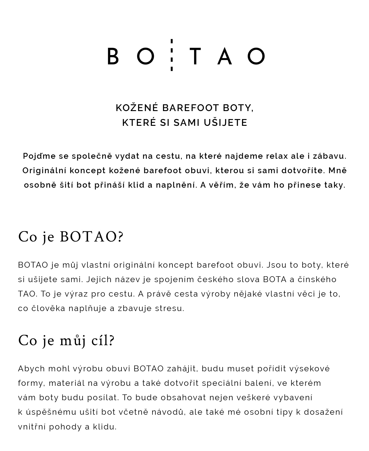 Unikátní koncept barefoot obuvi, díky kterému si z domova ušijete vlastní barefoot boty. Jednoduše, hravě a pro relax! Díky vám nakoupíme materiály a zahájíme výrobu v ČR. Pojďte si s námi ušít boty!