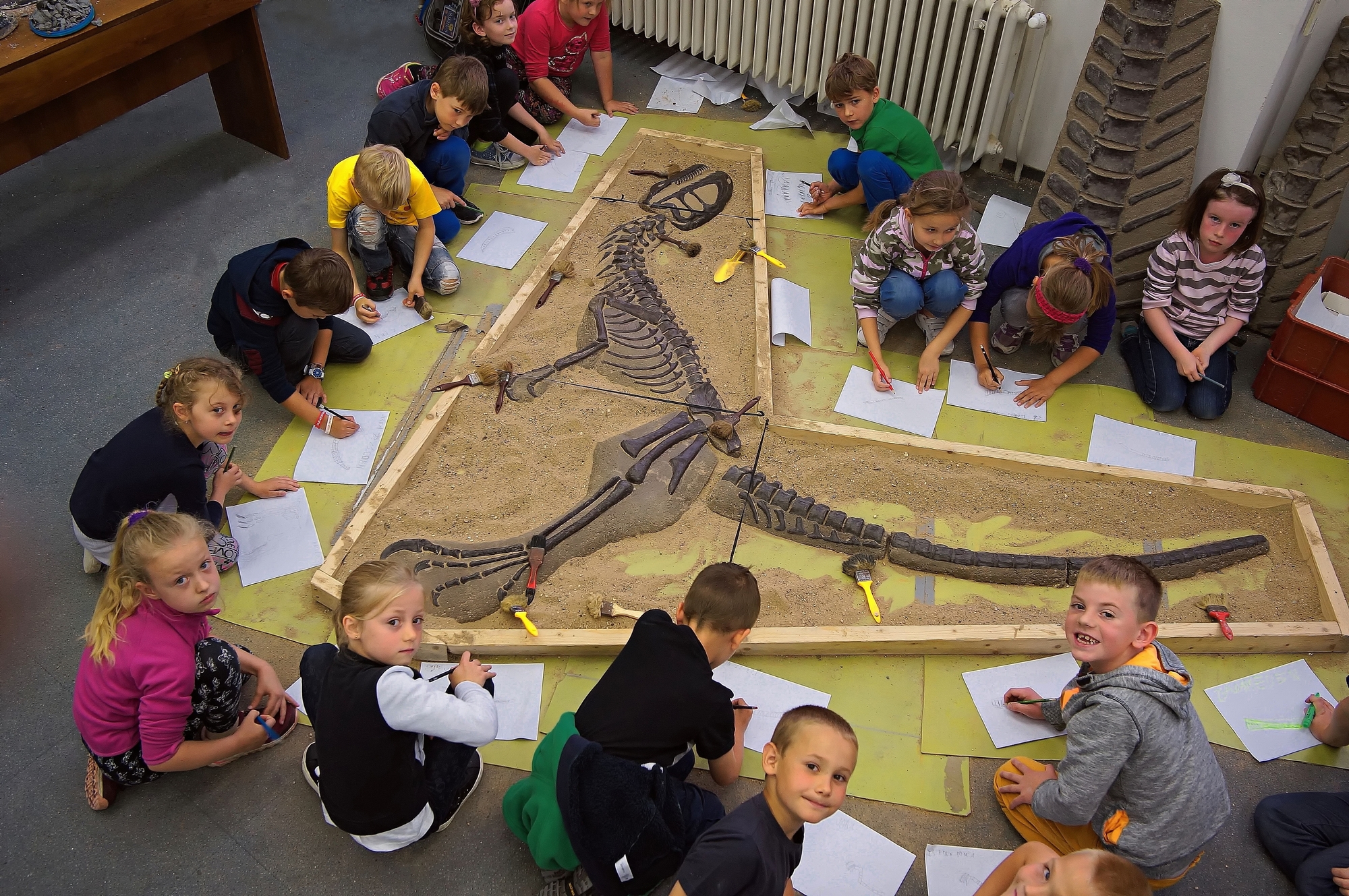 Mohli jsme též zapracovat na našich dinosauřích dílničkách, které jsou pro naše návštěvníky z řad dětí tím největším lákadlem. Další vylepšení pak nastávala za běhu, po menších či větších krůčcích. Nyní máme – mimo jiné – rozdělaného třímetrového plesiosaura (naši milou „lochnesku“, anebo „ještěrku“: tak ji nazývá Radek, když se morduje s jejími obratli, které jen velmi neochotně opouštějí horninu). Představte si, jak se na stěně skví na třímetrový mořský "ještěr". Není ta představa impozantní? Děcka budou nadšená! Rádi bychom plesiosaurovi vytvořili skleněnou vitrínu z bezpečnostního skla, nasvítili jej led-diodami, zrekonstruovali chybějící části. Ale lochneskou náš záměr nekončí! Co máme v plánu, nazýváme Trilopark 3.0. "Lochneskou" to celé jen začne.
