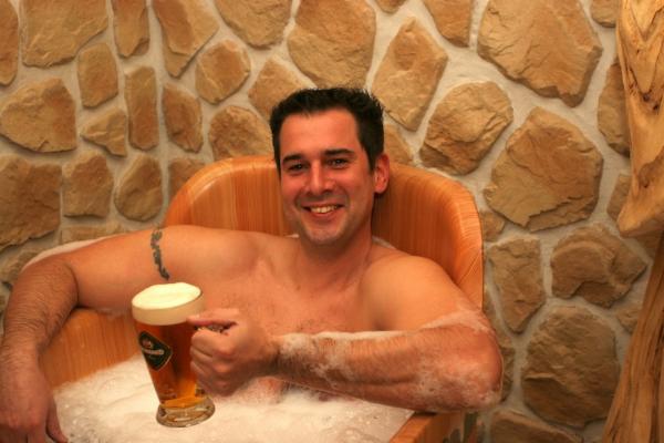 Pivní koupele jsou od středověku prověřenou léčebnou procedurou. Nutné je dodržet správnou teplotu lázně, dobu lázně a správné dávkování přísad. Koupele probíhají ve speciálních vanách určených pro pivní lázně a i proto příznivě prospívají organismu člověka. Pivní koupel očišťuje a pročišťuje organismus přes póry pokožky.