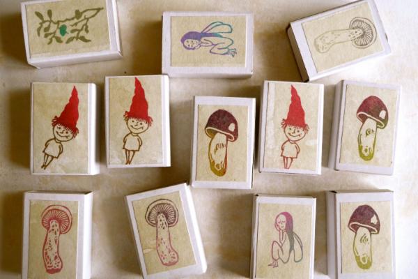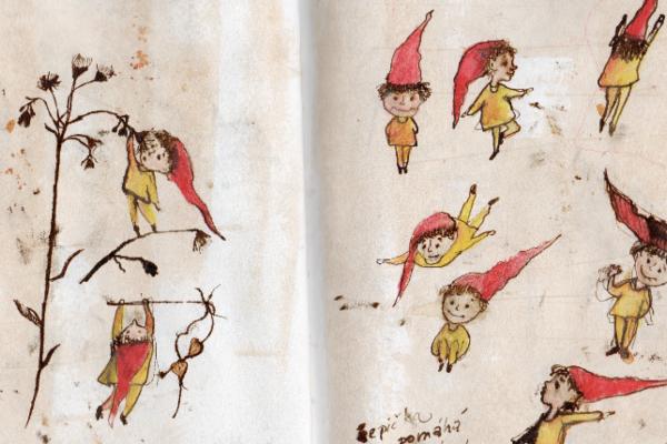 Nakonec vzniklo přes šedesát celostránkových ilustrací. Z kreseb nachytaných v plenéru dělám linorytová razítka, která kombinuji s kávovou malbou a akvarelem. Pro zajímavost v celé knize je použito přes 300 ručně vyrytých razítek. Ilustrace, které jsou nosnou linkou celé knihy, doplňuji jednoduchými textíky. Knížka je trochu o tom toulání, trochu o objevování pokladů lesa, ale také o tom, jak se díky našim pocitům a představám svět kolem nás proměňuje. Každý ho vlastně vidíme tak trochu po svém..