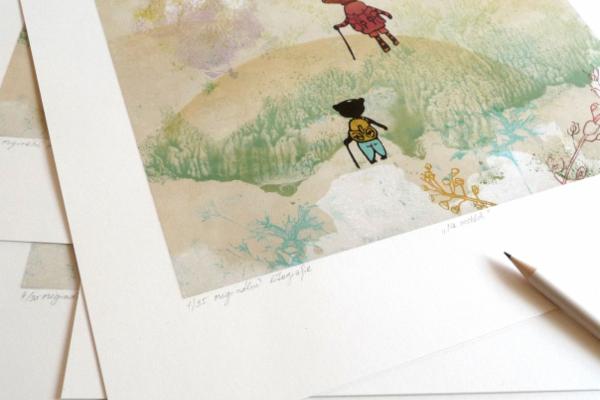 Navíc jsem 4 moje oblíbené ilustrace použila jako inspiraci pro tisk barevných litografií. Můžete jimi ozdobit třeba dětský pokojík a tak Malý Medvěd a jeho průvodci s Vámi zůstanou i po přečtení knížky a třeba je někdy zdědí Vaše vnoučata a pravnoučata. Protože litografie je 200 let stará grafická technika, která zaručuje kvalitu a trvanlivost a k tomu každý kousek je naprostý originál.