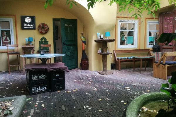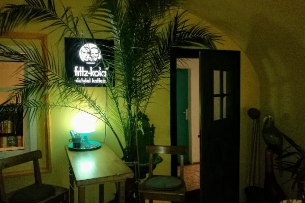 Jsme malá kavárna v srdci lázní Teplice, v historickém domě na Zámeckém náměstí, kdysi zvaném Zum Falken, jenž býval sídlem zámeckého správce. Jsme ambasádou Genia loci a Zeitgeistu celého "nejkrásnějšího místa v pekle", současných Sudet. Za tlustou uliční zdí najdete doslova rajskou zahradu, nádherný tichý dvorek s jezírkem pod střechou ze živých keřů, nejlepší místo pro šálek vaší kávy.