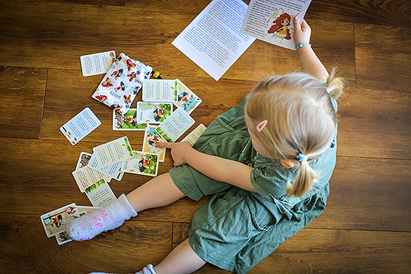 Jedna pohádka se dá zahrát za deset minut, ale klidně i za hodinu. Motivací k dočtení pohádky je už samotná pomoc pohádkovým bytostem nebo klidně i slíbená odměna. Kartičky s úkoly jsme rozdělili do čtyř tematických kategorií podle toho, kde zrovna čtete (les, příroda, město, domov).