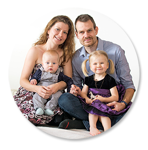 Jsme taková normální čtyřčlenná rodinka. Máma je novinářka, co ji na mateřské dovolené svrbí prsty. Táta je grafik na volné noze, který má na svědomí nejen sazby knih, letáků, ale i webové bannery, polepy autobusů a lodí. Máme dvě malé děti, tříletou dceru a ročního syna.