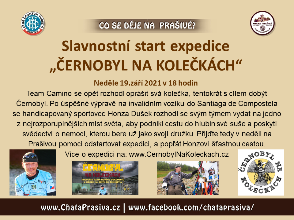 Setkání se uskuteční od pátku 30. září do neděle 2. října 2022. Honza a část realizačního týmu dorazí na Chatu Prašivá v pátek večer. Posedíme, pohovoříme, a pokud dorazíte, rádi vás uvidíme. A pokud se sejde dost zájemců, pustíme i celovečerní verzi dokumentu Černobyl na kolečkách. Na chatě je možnost přenocování, žel lůžka jsou již obsazena, tedy možnost je pouze na vlastní karimatce a ve vlastním spacáku.