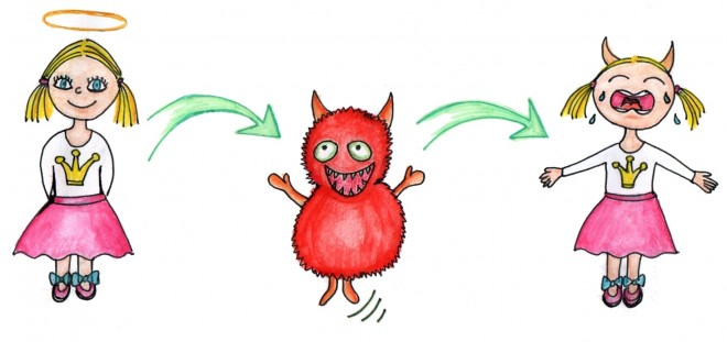 VZTEKLÍK je imaginární postavička, která má pelíšek v hlavě každého z nás. Když na mou malou princeznu začaly přicházet vzteklé scény, MOC NÁM POMOHL. Tím, že jsme si o něm a situacích, kdy přicházel, povídaly. Najednou jsme na ně obě byly schopné pohlížet z nadhledu. Pomocí Vzteklíka jsme našly vzájemné pochopení a společnou cestu ven.